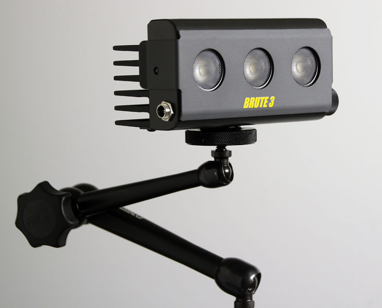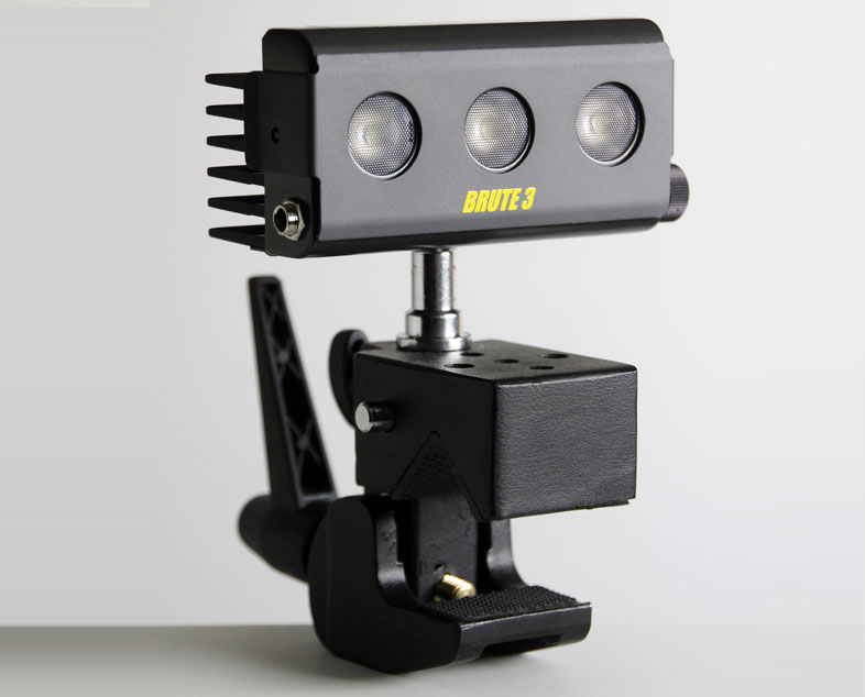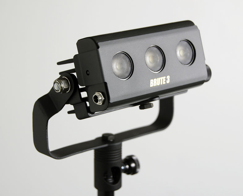 The BRUTE 3 is the latest addition to the LEDZ product line, it is a versatile, lightweight, powerful light that can be used in many different applications. With a color temp of 5500k and a full range spectrum, unmatched by our competitors, it has a circular beam, and a much longer range than other similar LED lighting solutions. The BRUTE 3 is more than TWICE as powerful as our competitors and around HALF the price. The LEDZ BRUTE 3 will have an optional on board battery that will run the unit for an hour and a battery "Quick Pack" that will run the unit for 8 hours. The Quick Pack will also run the LEDZ MiniPar and BRUTE 9. Several other optional accessories are available including a gel frame, handle, gooseneck adapter with baby-pin mount, etc
